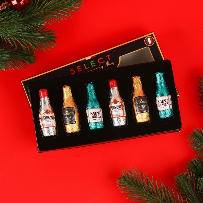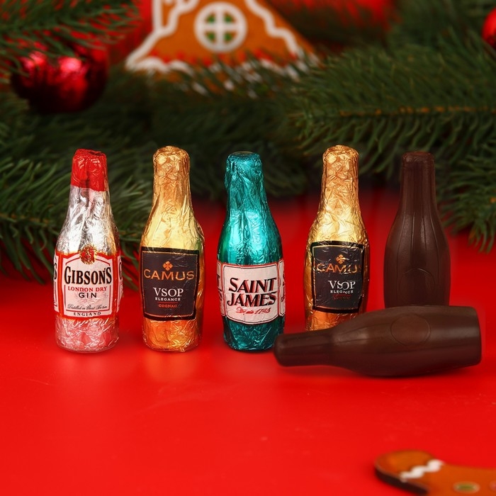 Шоколадные бутылочки из Франции станут отличным и вкусным подарком для ваших родных и близких. Ассорти шоколадных бутылочек позволит выбрать любимый вкус. Среди начинок шоколадных фигурок представлены: Коньяк Camus VSOP, Джин Gibson's, Ром St.James.