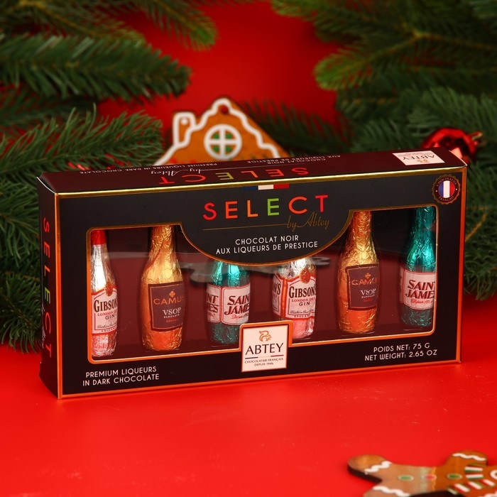 Новый год. Шоколад фигурный ETUI SELECT BY ABTEY SENIOR, с начинкой из ликера, ассорти, 13 ± 1 г
