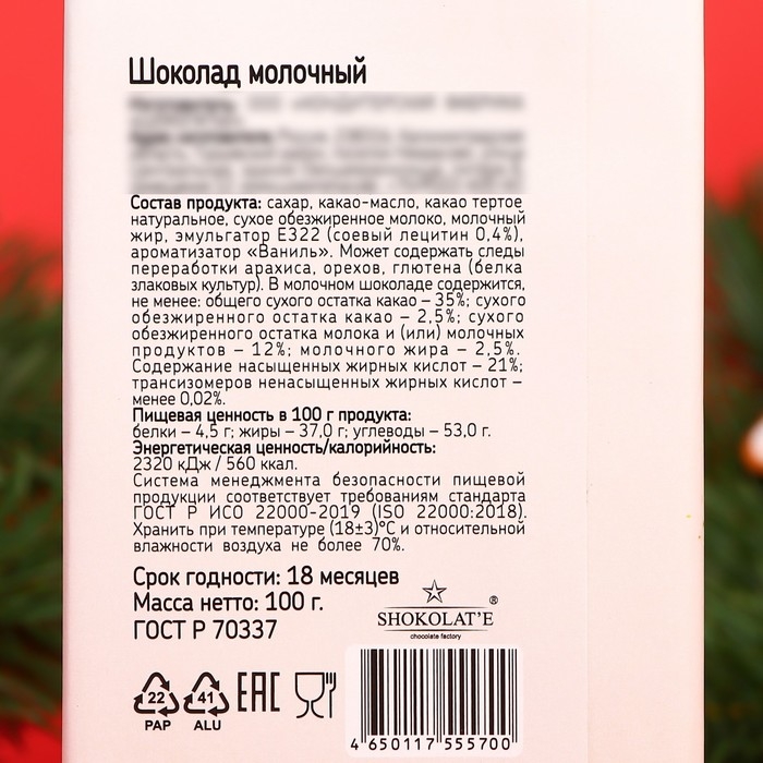 Подарочный шоколад с новогодним дизайном.