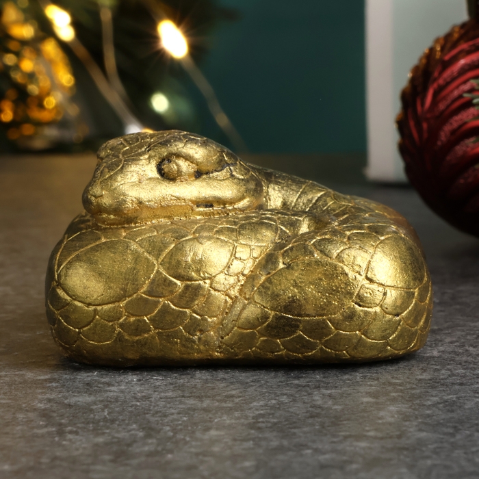 Новый год. Символ 2025. Фигура "Змея клубочком" старое золото, 5х5х2,5см