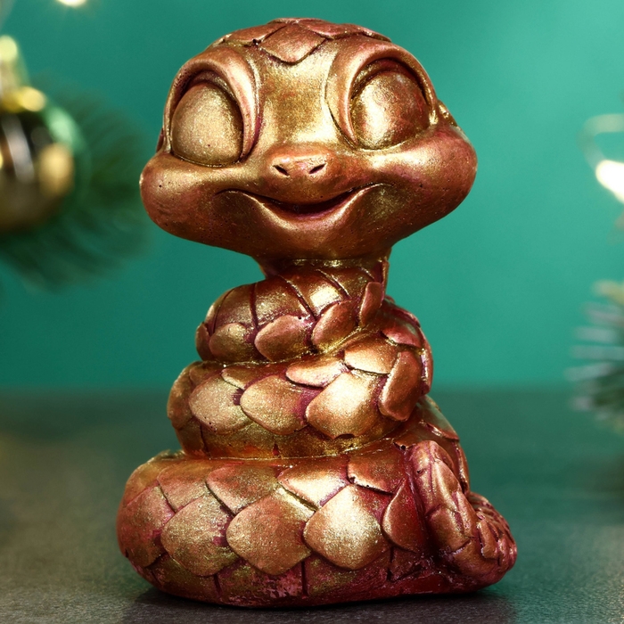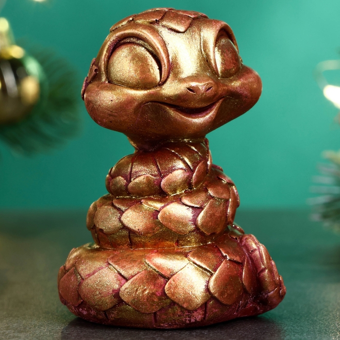Новый год. Символ 2025. Фигура "Змея Рубин" бордовая-золото, 6х5см