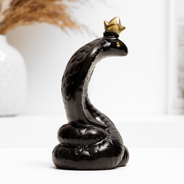 Новый год. Символ 2025. Фигура "Змея с короной" черный, 8 х 16,5 см