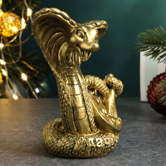 Новый год. Символ 2025. Фигура "Змея с красками" старое золото, 8см
