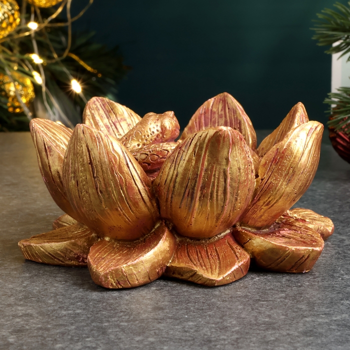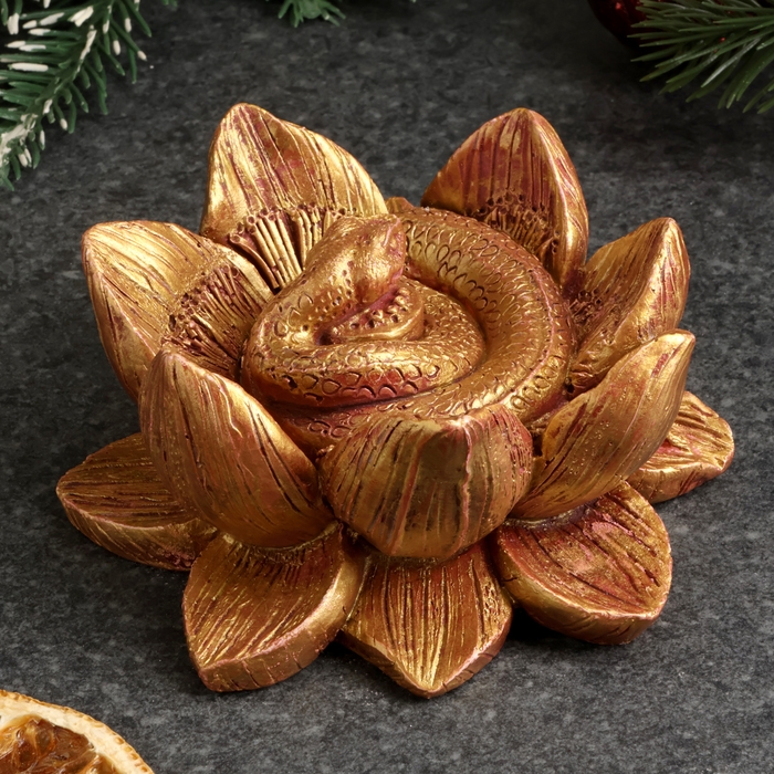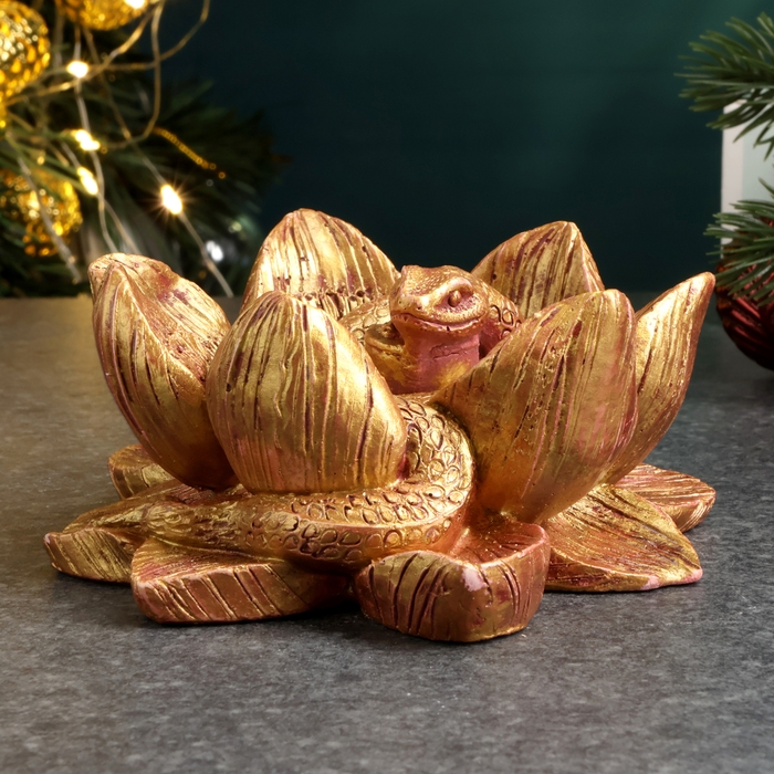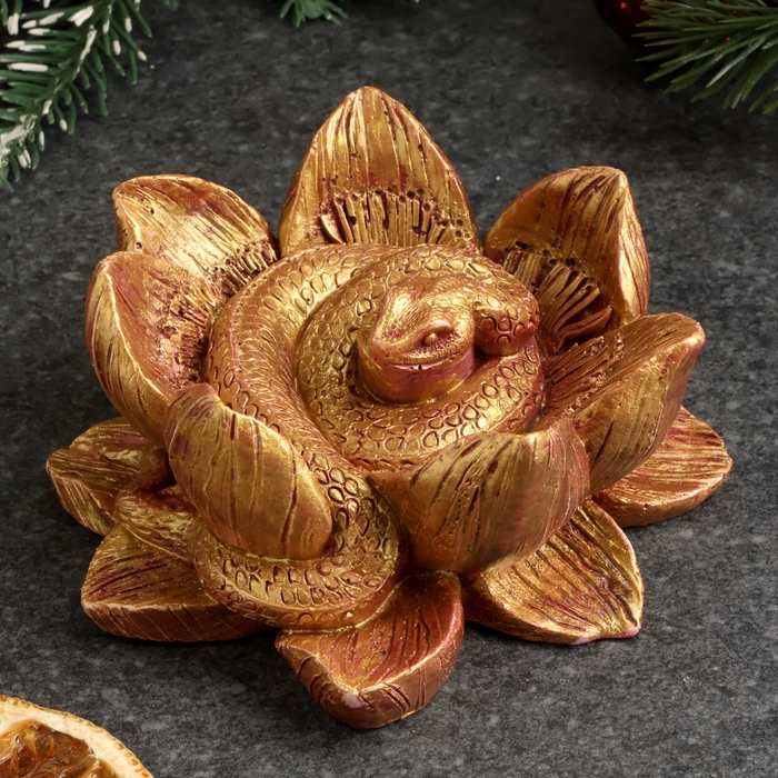 Новый год. Символ 2025. Фигура "Змея в лотосе" бордовый с позолотой, 4х10см