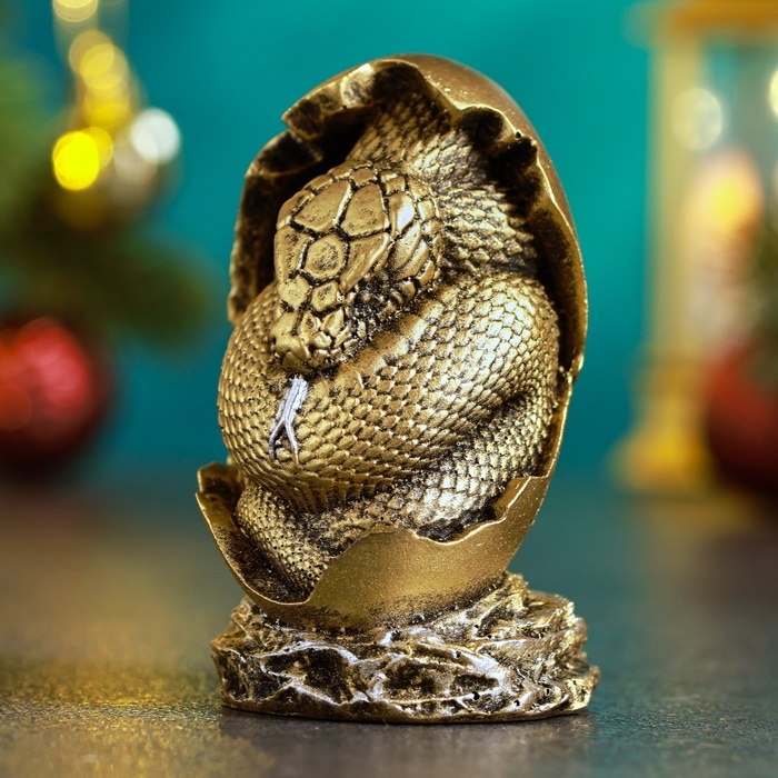 Новый год. Символ 2025. Фигура "Змея в яйце" 4х4х7см, бронза