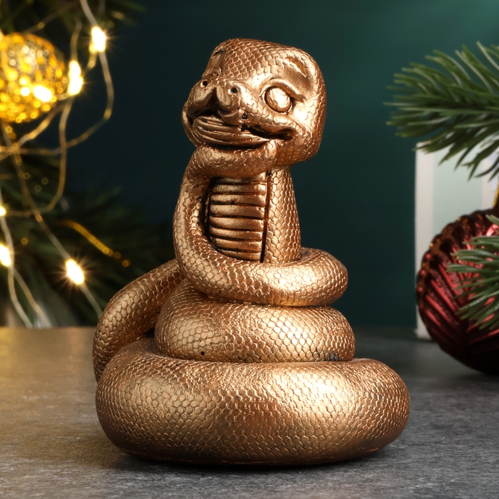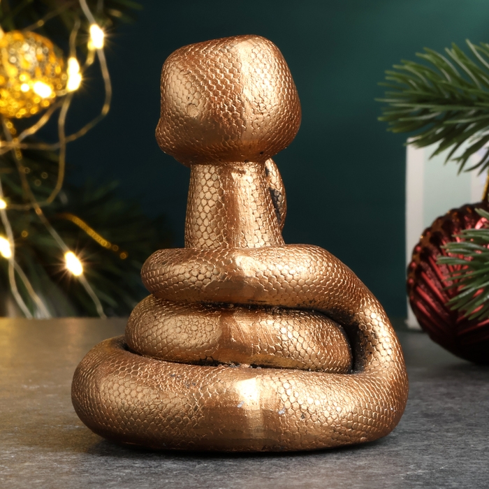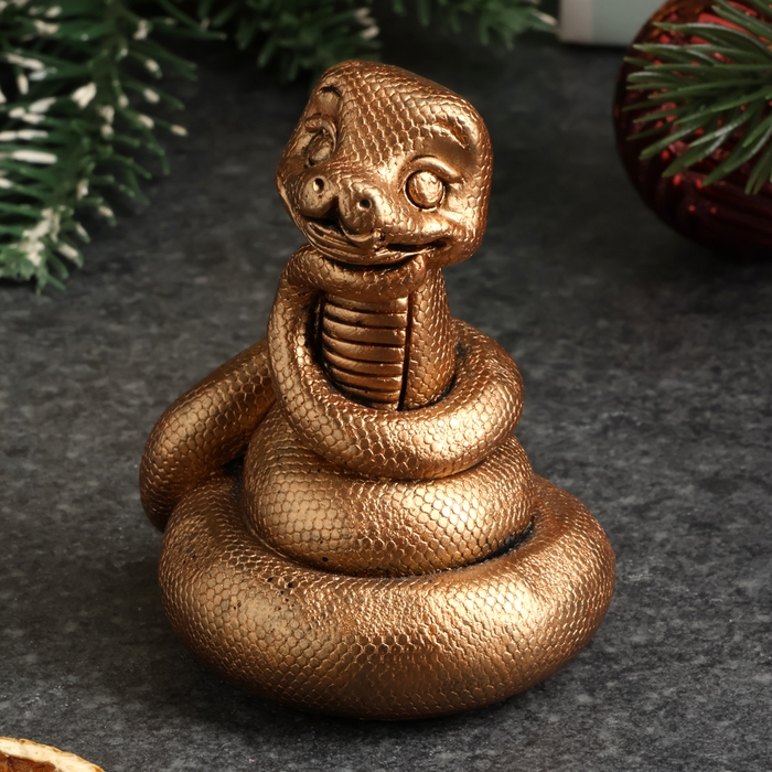 Новый год. Символ 2025. Фигура "Змейка мечтает" бронза, 6х6см