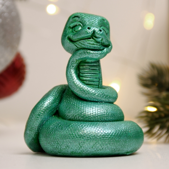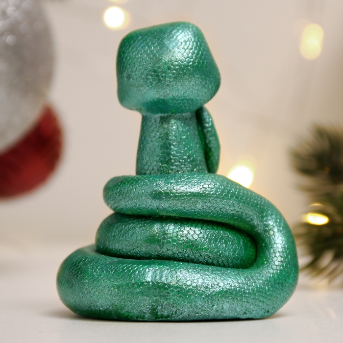 Новый год. Символ 2025. Фигура "Змейка мечтает" изумрудный, 6х6см