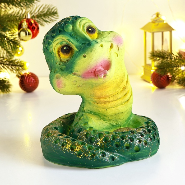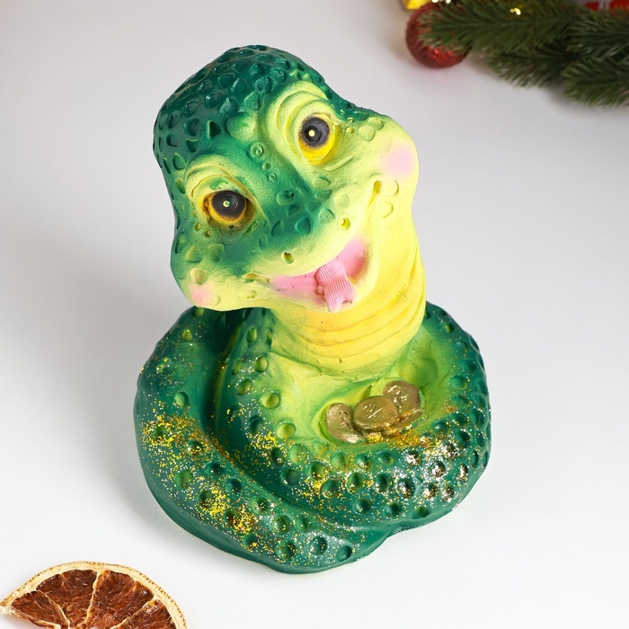 Новый год. Символ 2025. Копилка "Змея с монетами" 16х15х17см, цветная