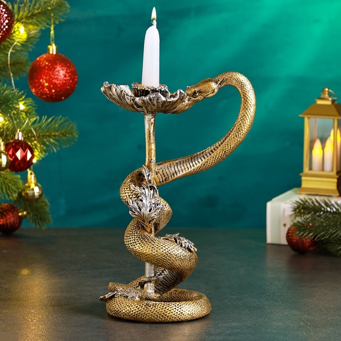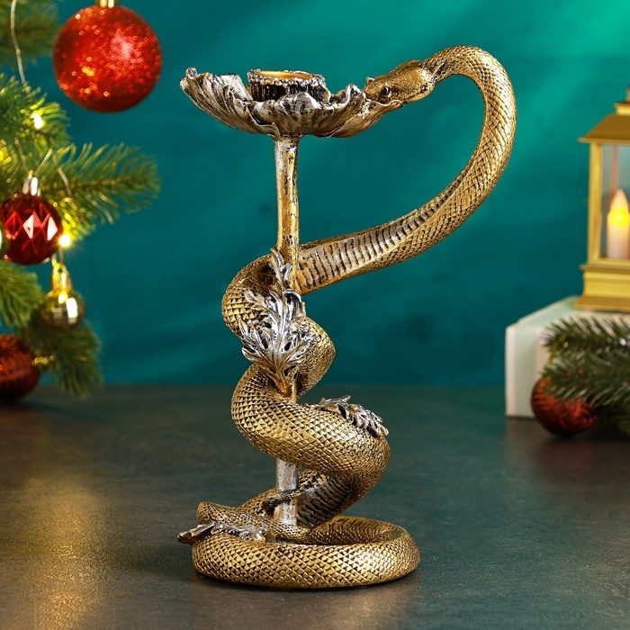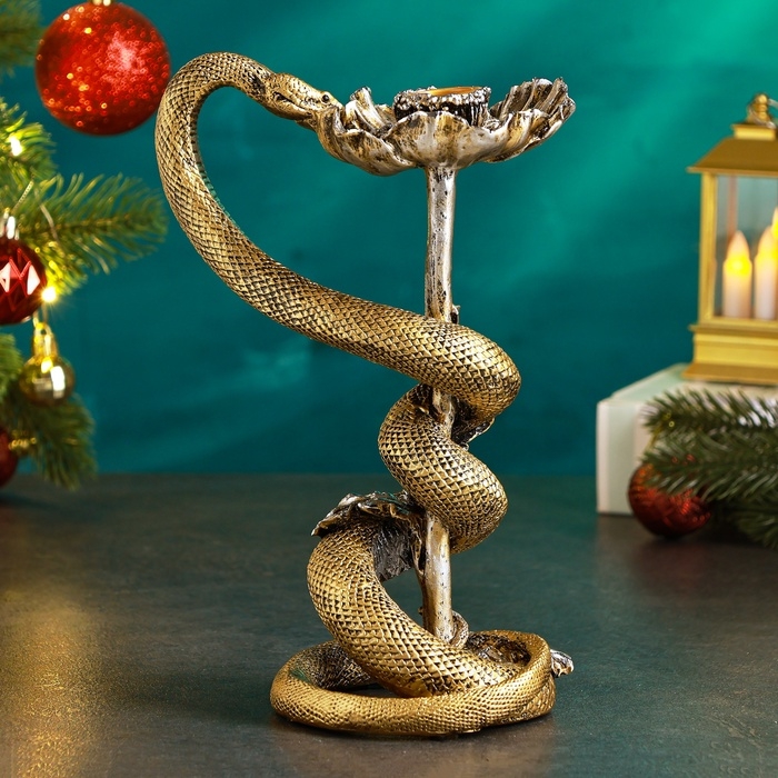 Новый год. Символ 2025. Подсвечник новогодний "Мак и змея" 11х14х24см, золото