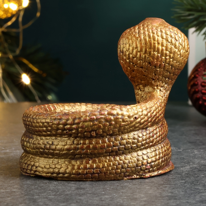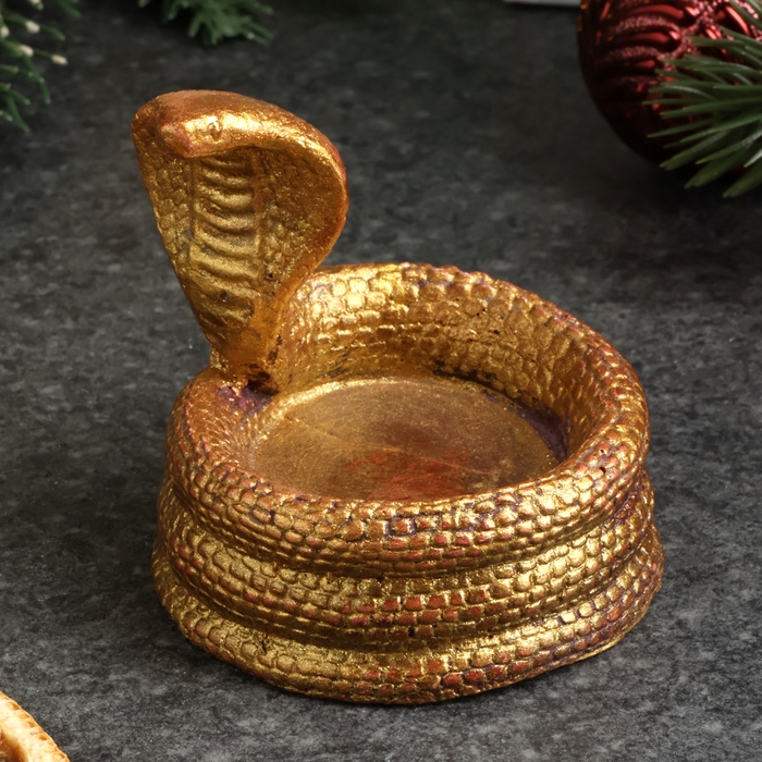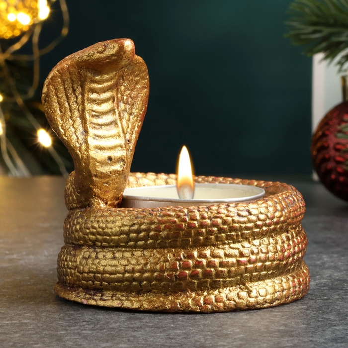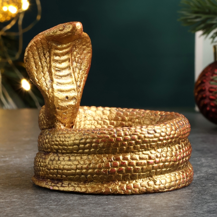 Новый год. Символ 2025. Подсвечник новогодний "Змея кобра" бордовый с позолотой, 8х5см