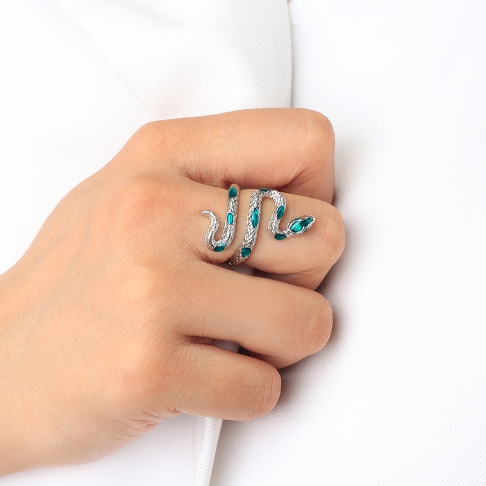 Новый год! Символ года 2025! Кольцо «Змея» спираль, цвет зелёный в серебре, безразмерное