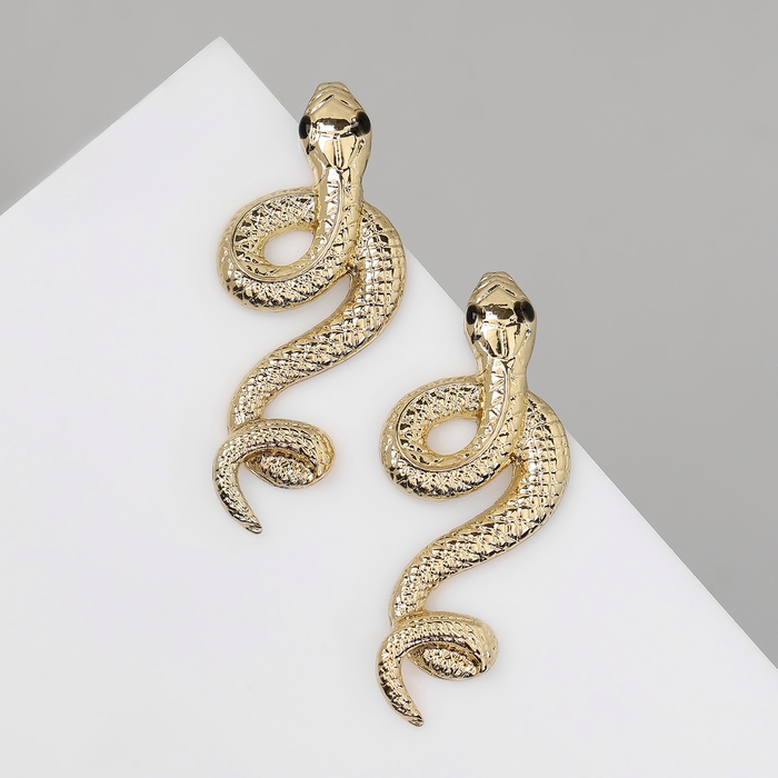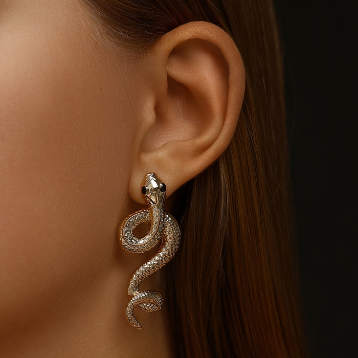 Новый год! Символ года 2025! Серьги металл «Змея» пламенное желание, цвет золото