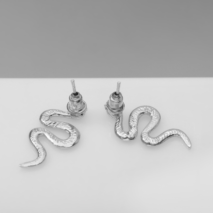 Новый год! Символ года 2025! Серьги металл «Змея» волнистая, цвет серебро