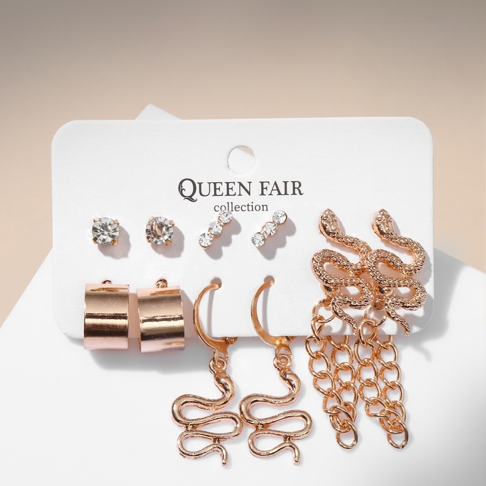 Новый год! Символ года 2025! Серьги набор 6 пар «Тренд» змеи, цвет золото