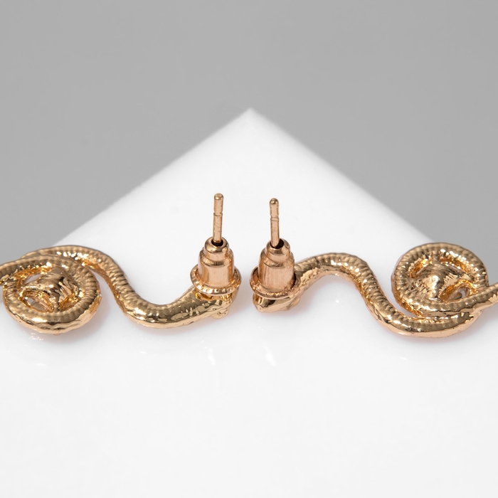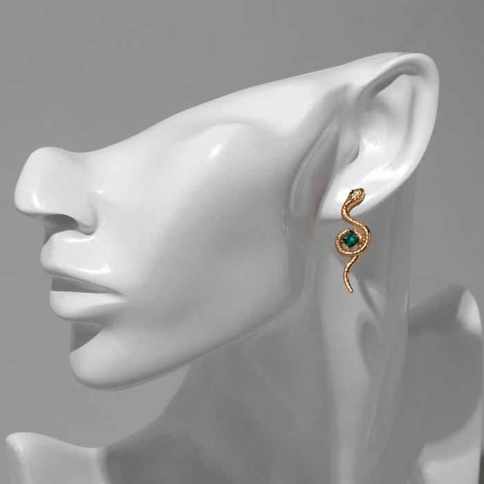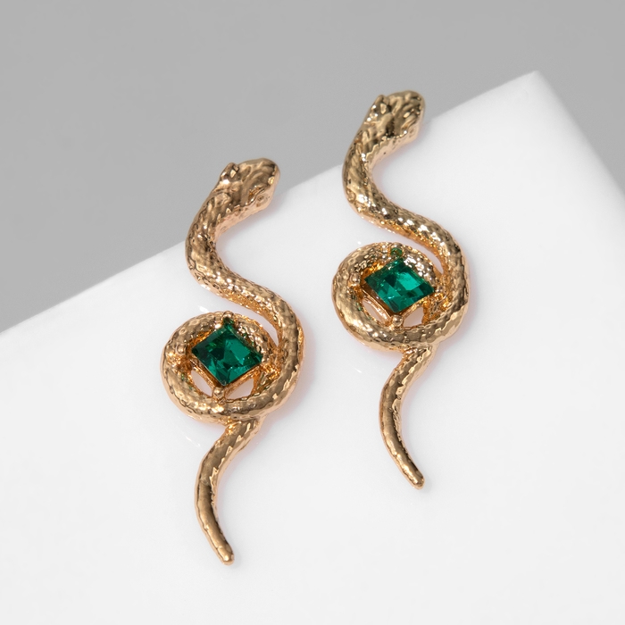 Новый год! Символ года 2025! Серьги со стразами «Змея» завиток, цвет зелёный в золоте