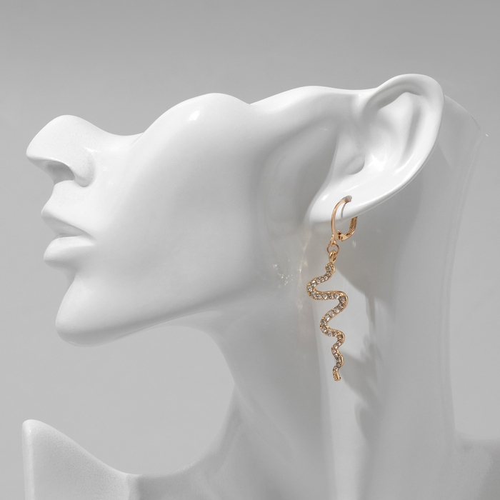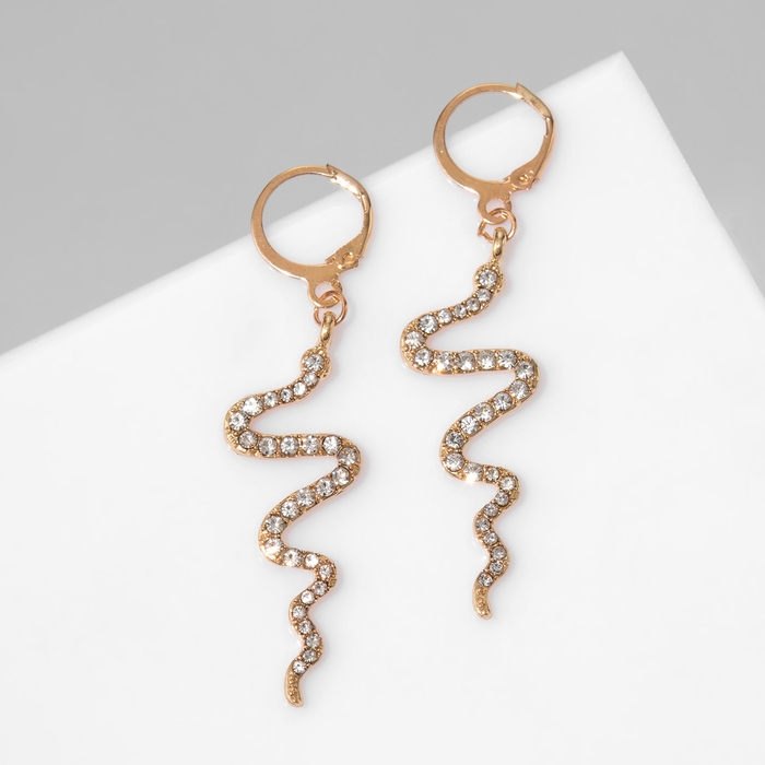 Новый год! Символ года 2025! Серьги висячие со стразами «Змейка», цвет белый в золоте