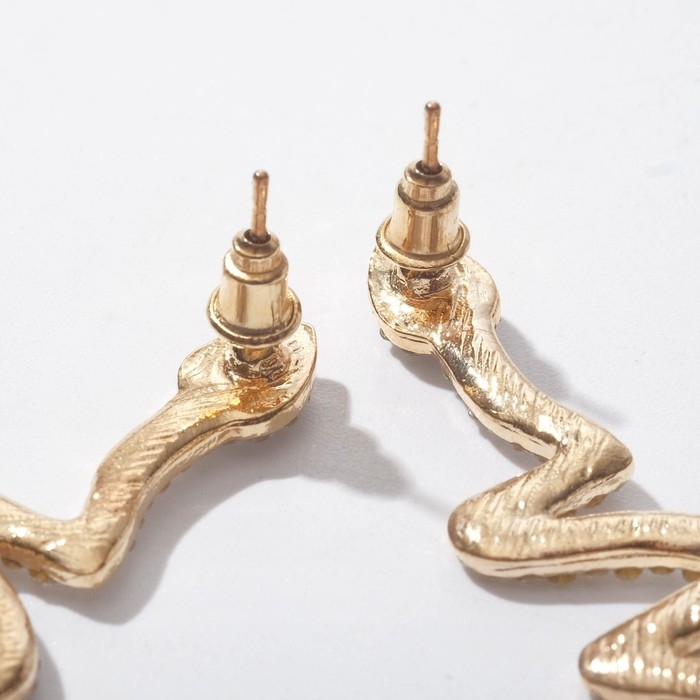 Новый год! Символ года 2025! Серьги висячие со стразами «Змейка» изогнутая, цвет белый в золоте, 5,7 см