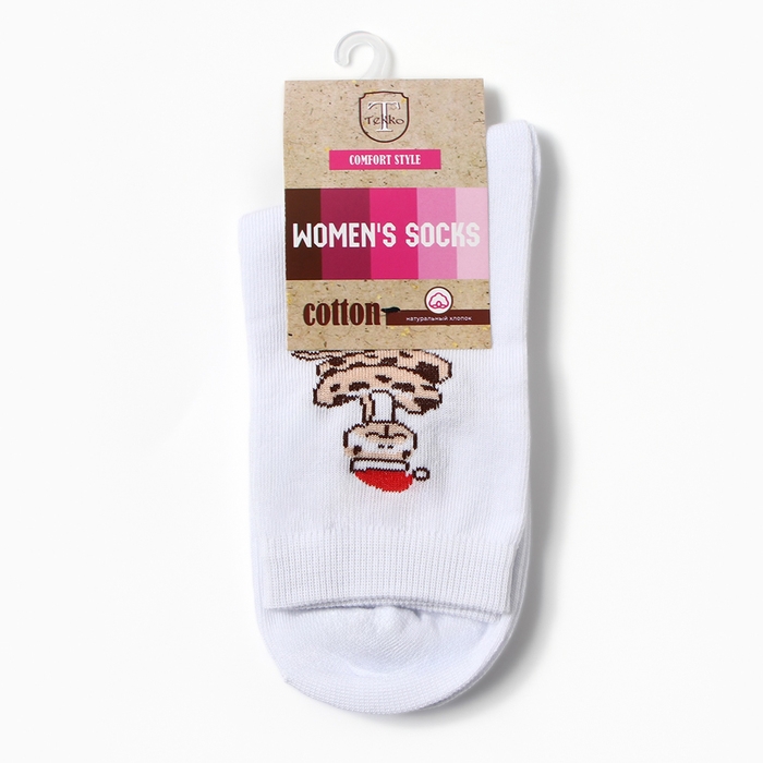 Новый год. Символ года. Змея. Носки женские "Новогодняя змея", цвет белый, р-р 23-25