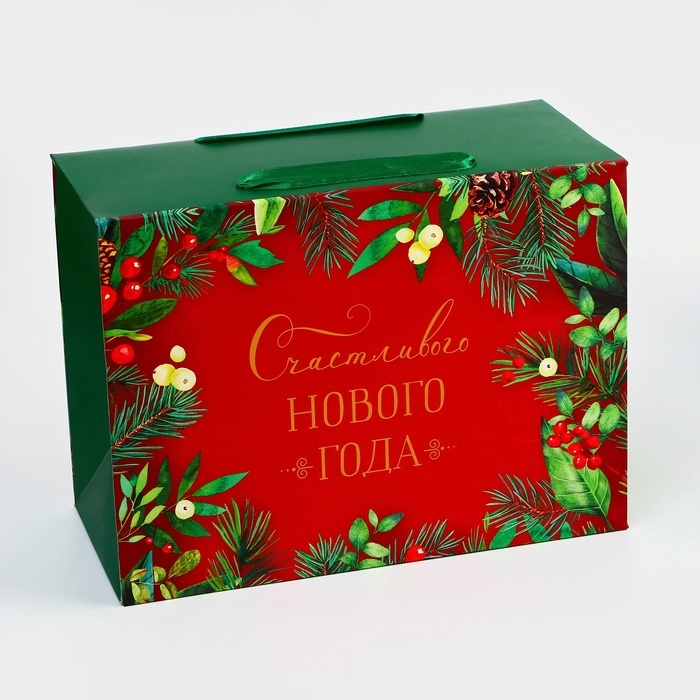Новый год. Сумка-коробка подарочная новогодняя "Счастливого нового года", 27 х 20 х 13 см.
