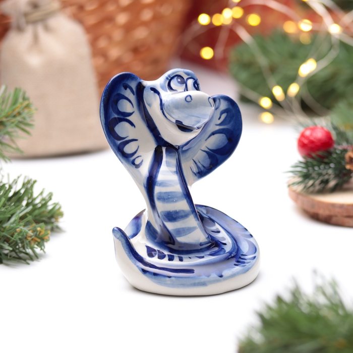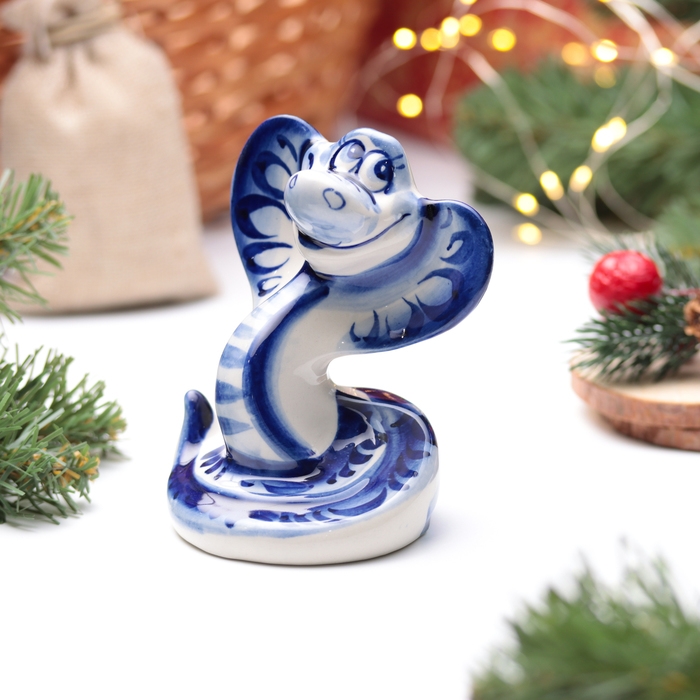 Новый год. Сувенир символ года 2025 "Змея Гера", гжель, 11 см