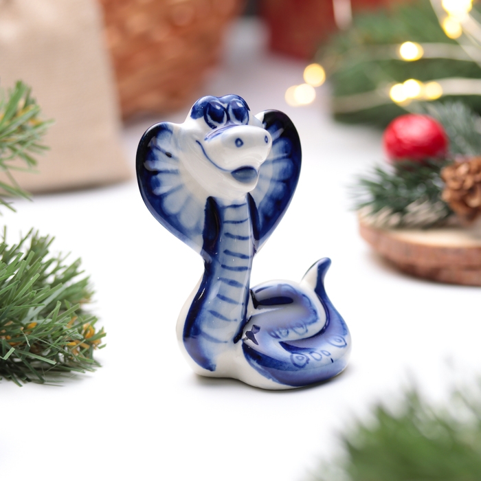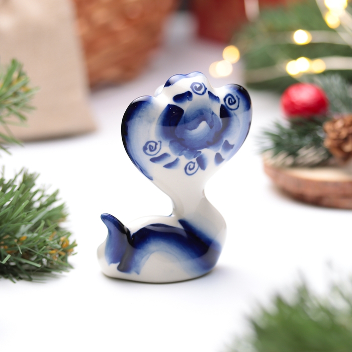 Новый год. Сувенир символ года 2025 "Змея Василиса", гжель, 8,5 см