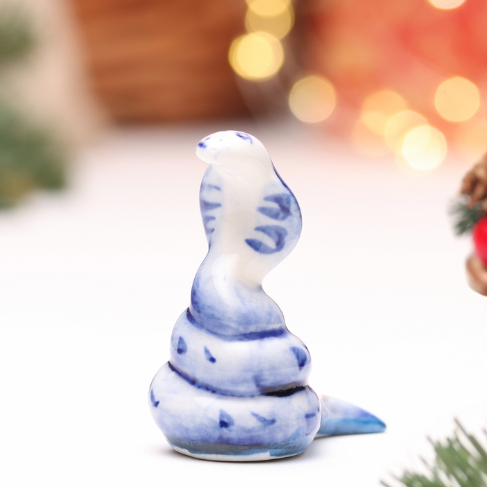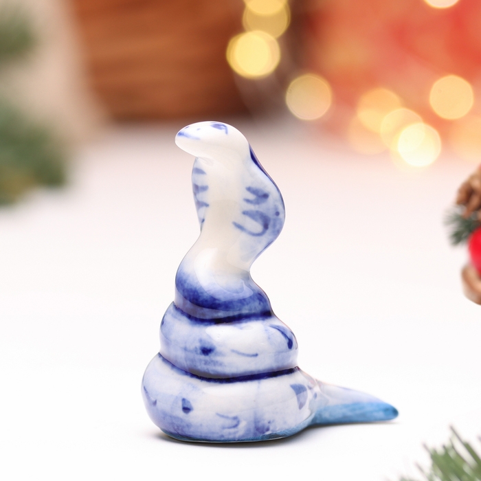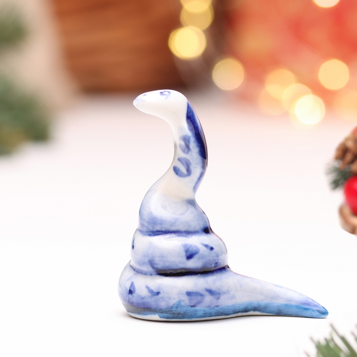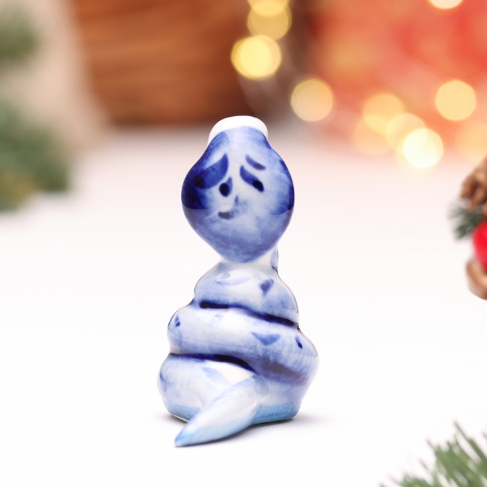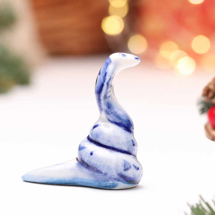 Новый год. Сувенир символ года 2025 "Змея Жужа", гжель, 5,5 см