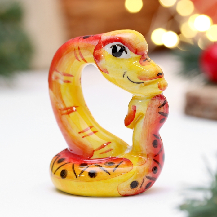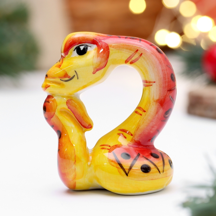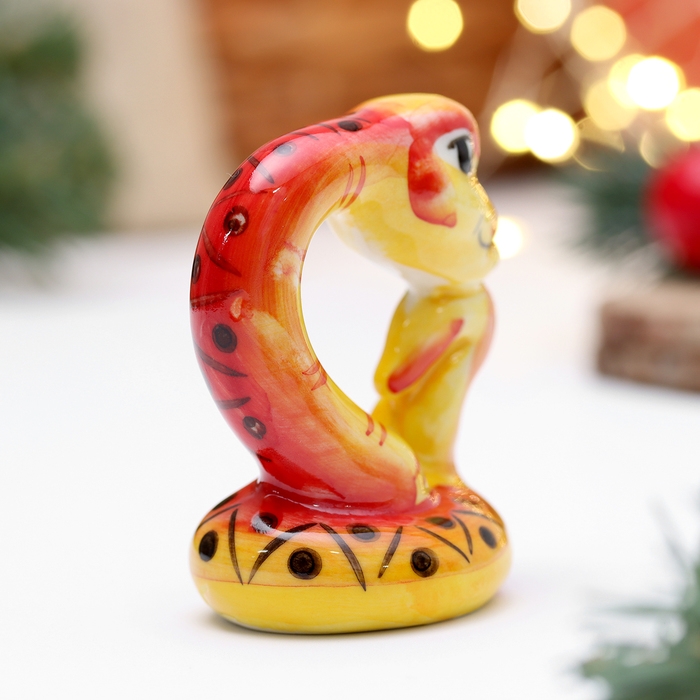 Новый год. Сувенир символ года "Змей Мыслитель красный", 7 см, фарфор