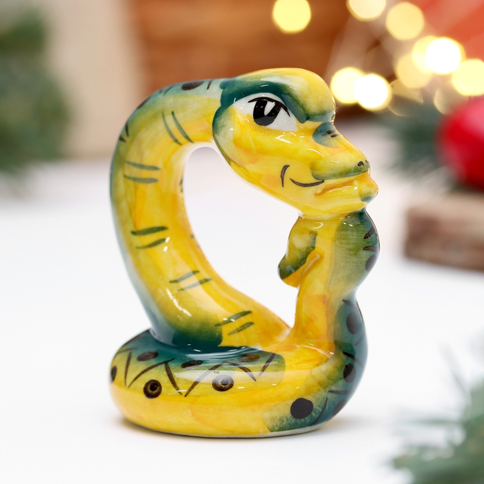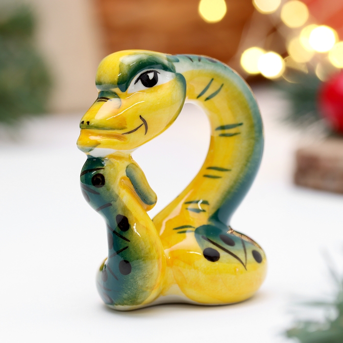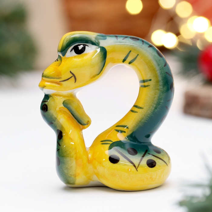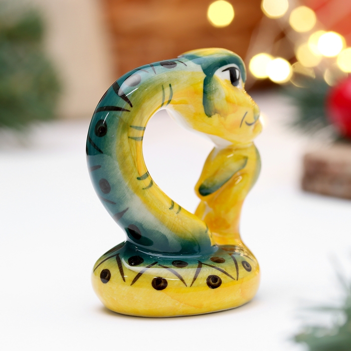Новый год. Сувенир символ года "Змей Мыслитель зеленый", 7 см, фарфор