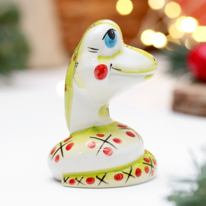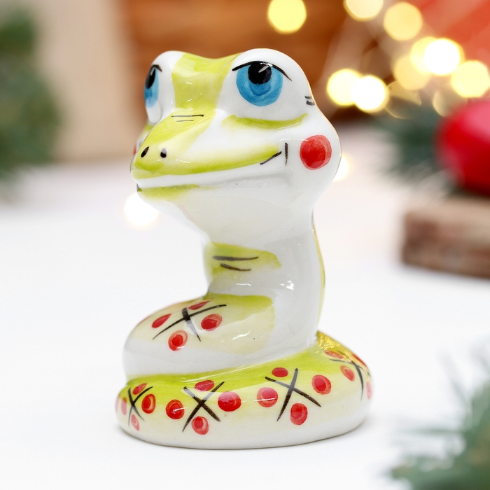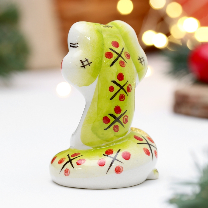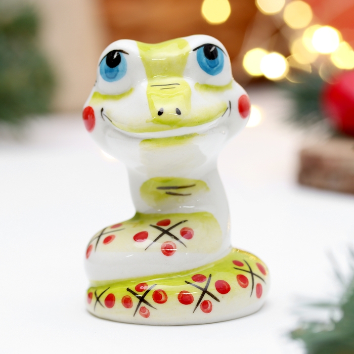 Новый год. Сувенир символ года "Змей Улыбка зеленый", 7 см, фарфор