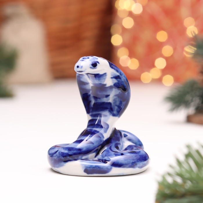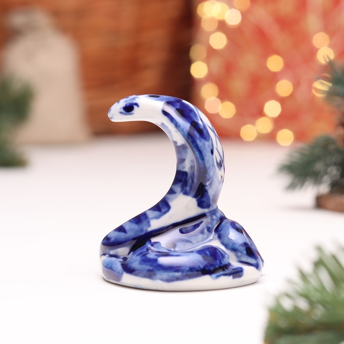 Новый год. Сувенир символ года "Змея", №12, гжель, 6 см
