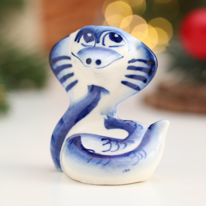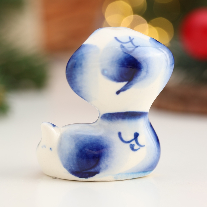 Новый год. Сувенир символ года "Змея Ляля", гжель, 5,5 см