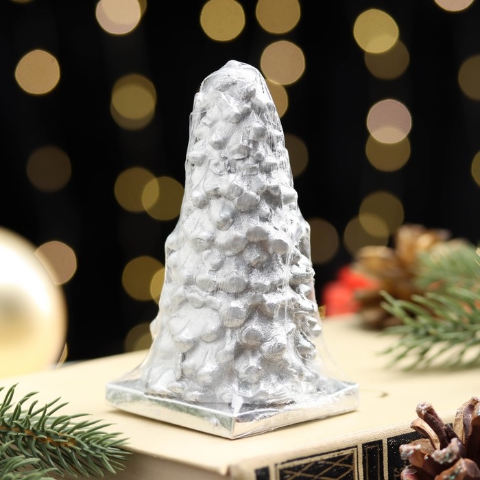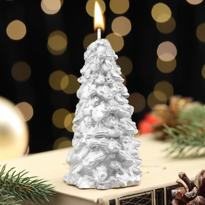 Новый год Свеча новогдняя "Ёлка" 10х5см, серебро