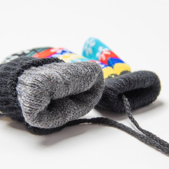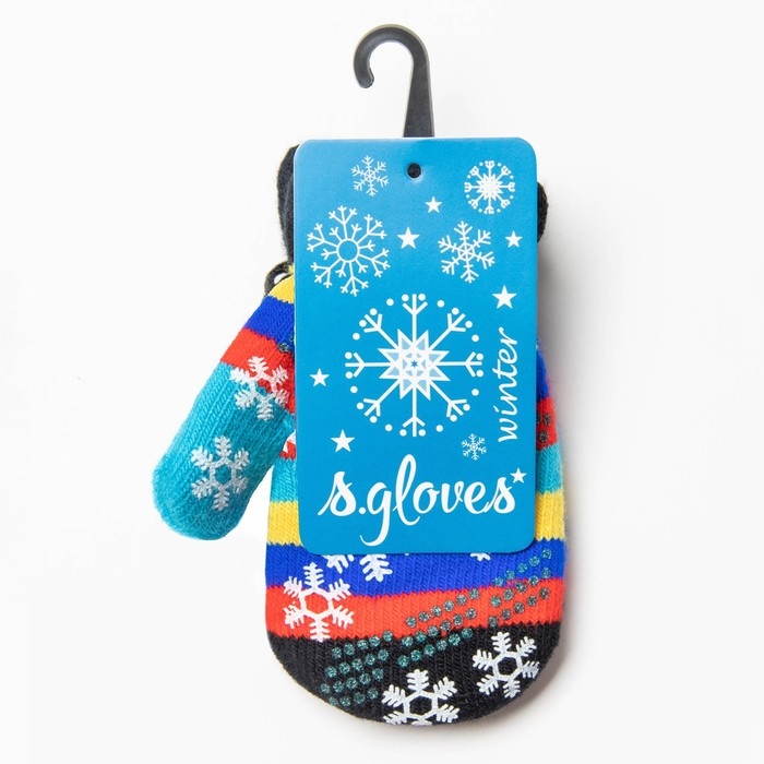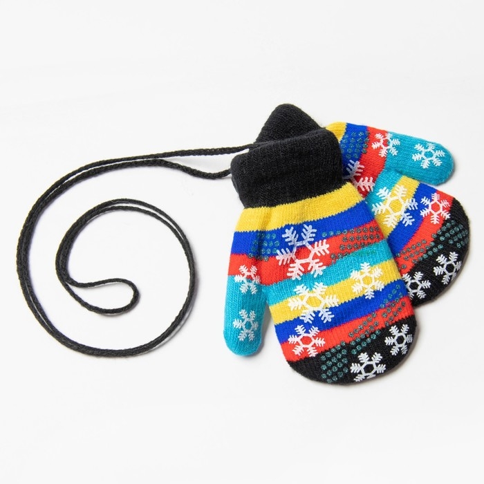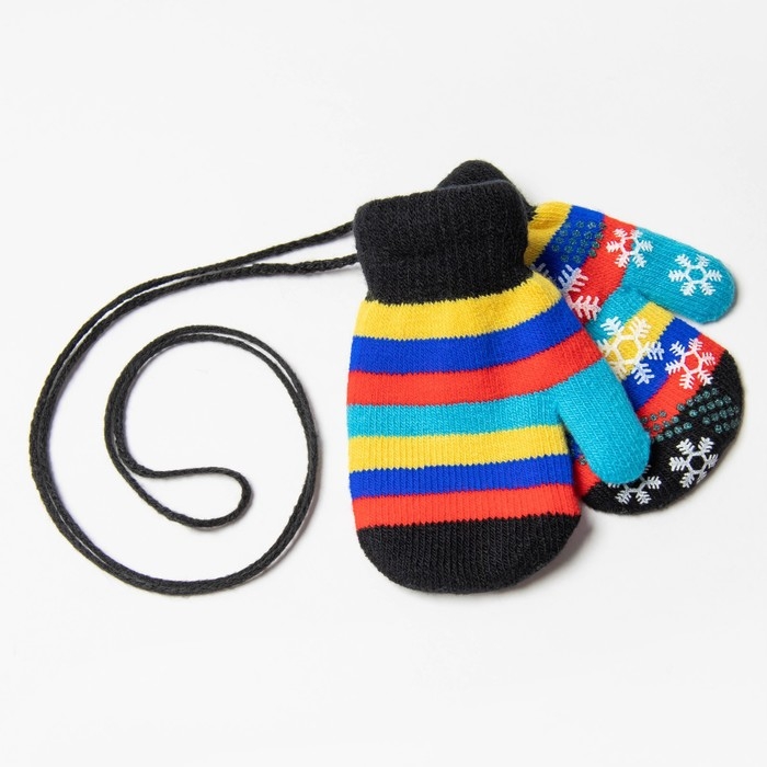 Новый год. Варежки детские, цвет чёрный/полосочки, размер 14,5х6,7