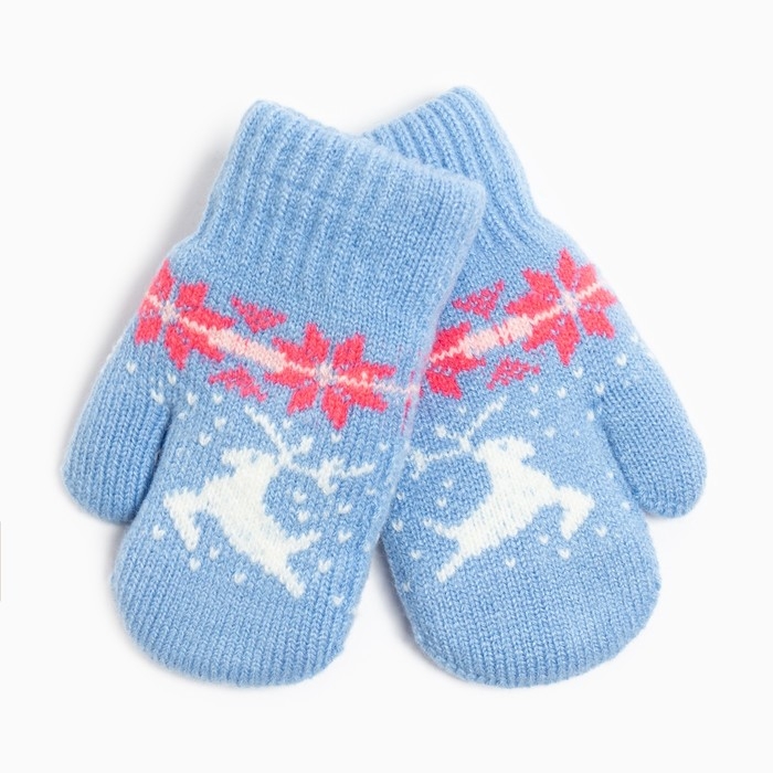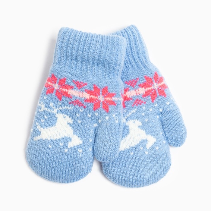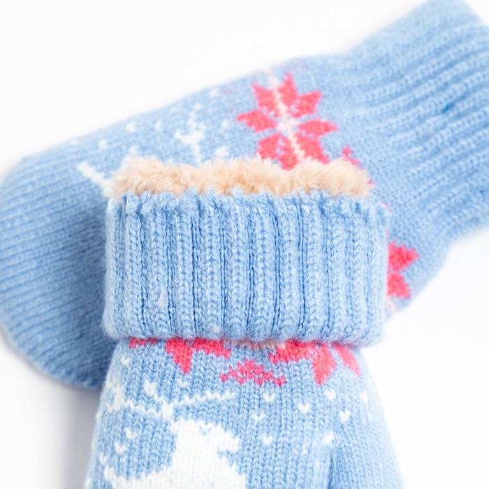 Новый год. Варежки детские, цвет голубой, размер 14 (4-6 лет)