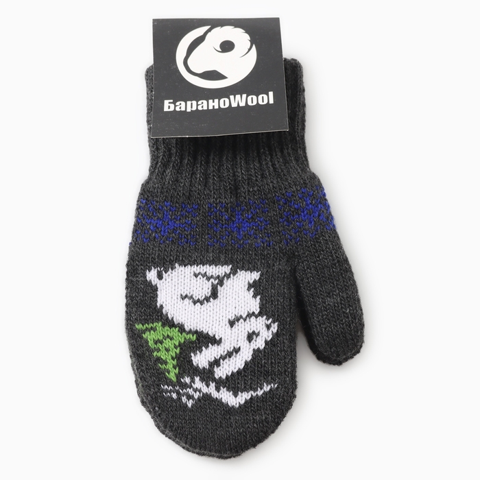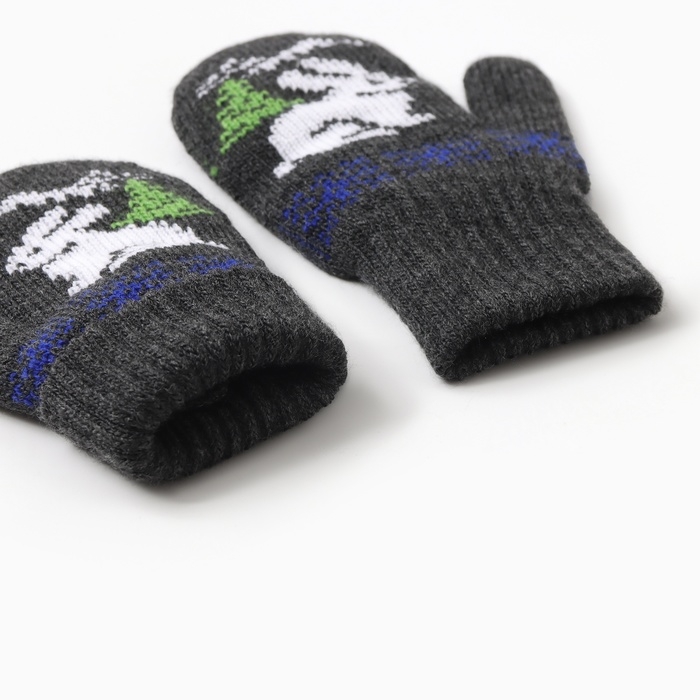 Новый год. Варежки двойные детские "Зайчик", цвет серый, р-р 12