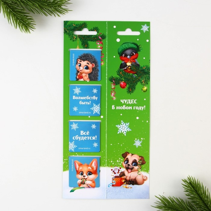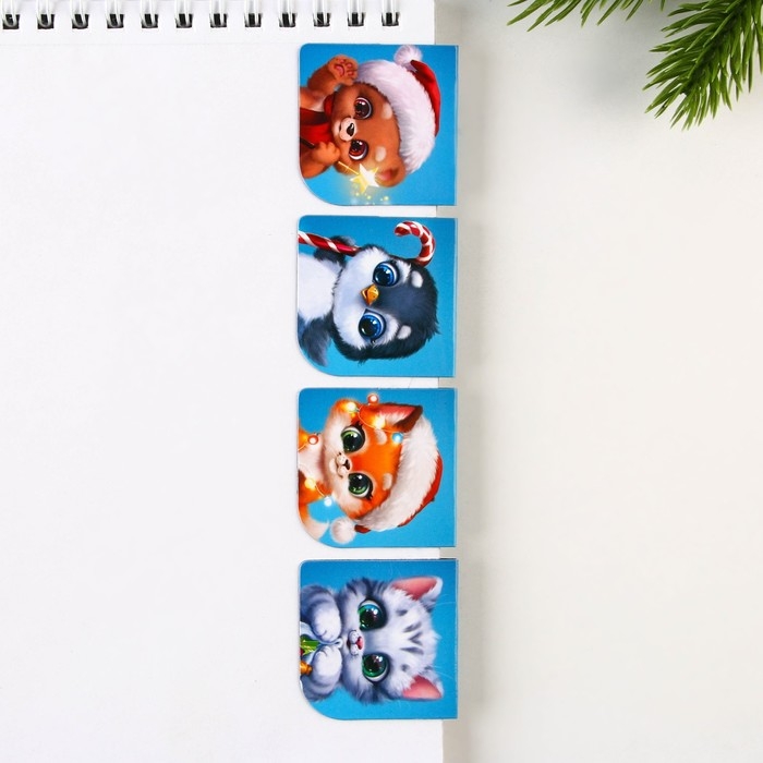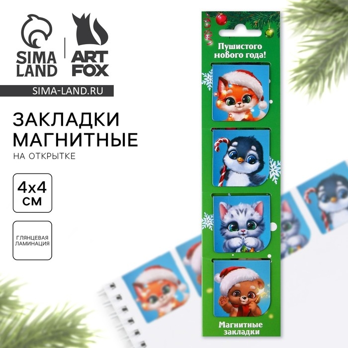 Новый год. Закладки для книг магнитные «Пушистого Нового года», на открытке, 4 шт