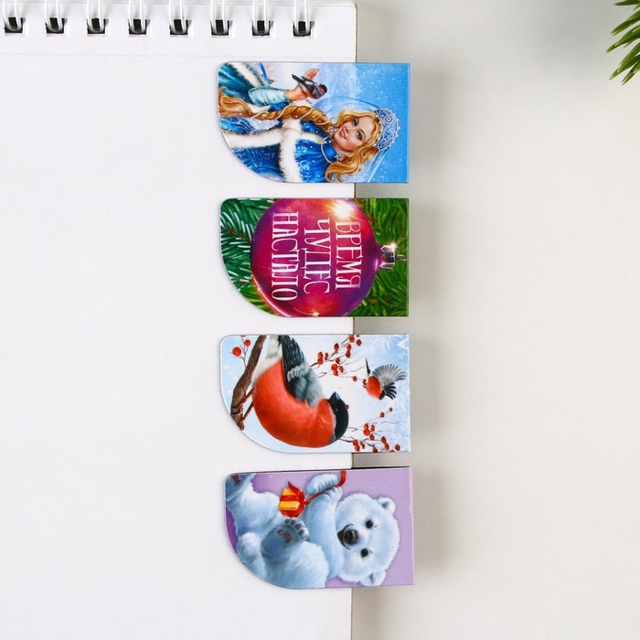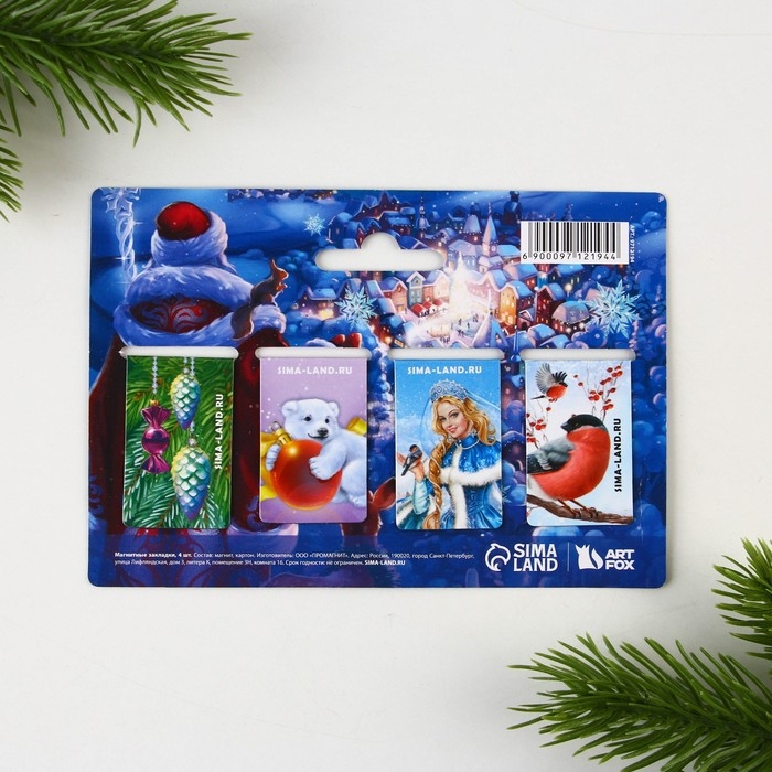 Новый год. Закладки для книг магнитные «Счастливого нового года», 4 шт мини