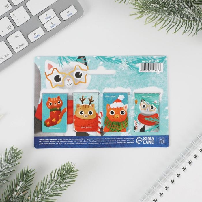 Набор магнитных закладок для книг Calligrata 6 штук, "Кошки", МИКС