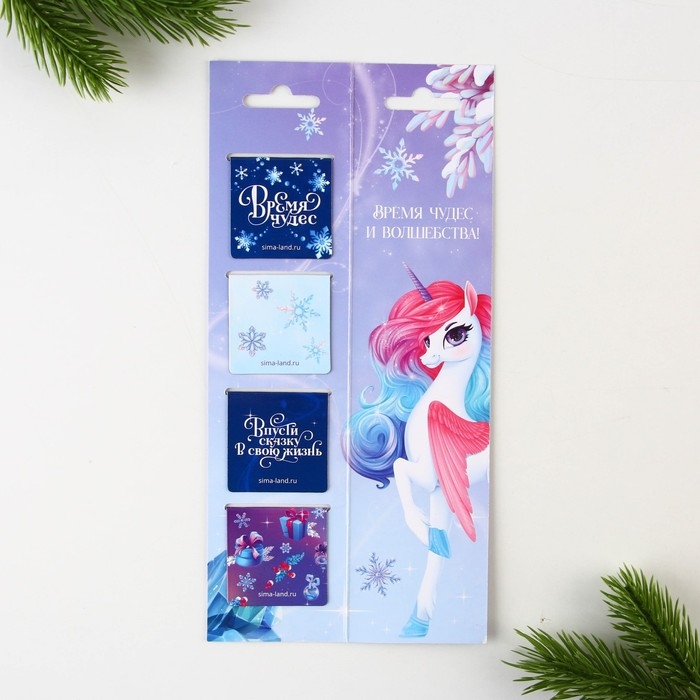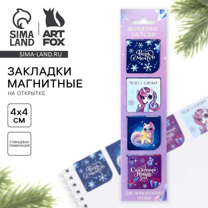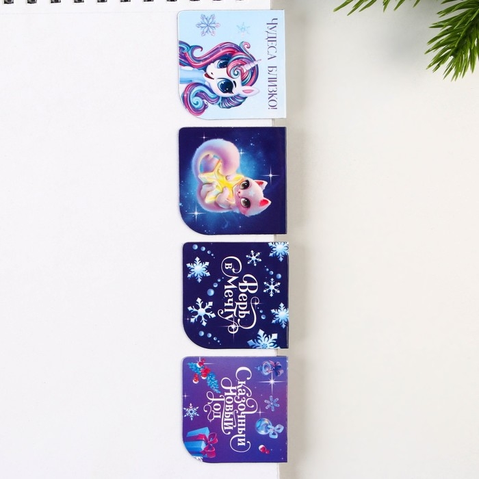 Новый год. Закладки для книг магнитные «Волшебные», на открытке, 4 шт