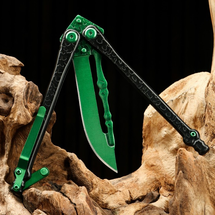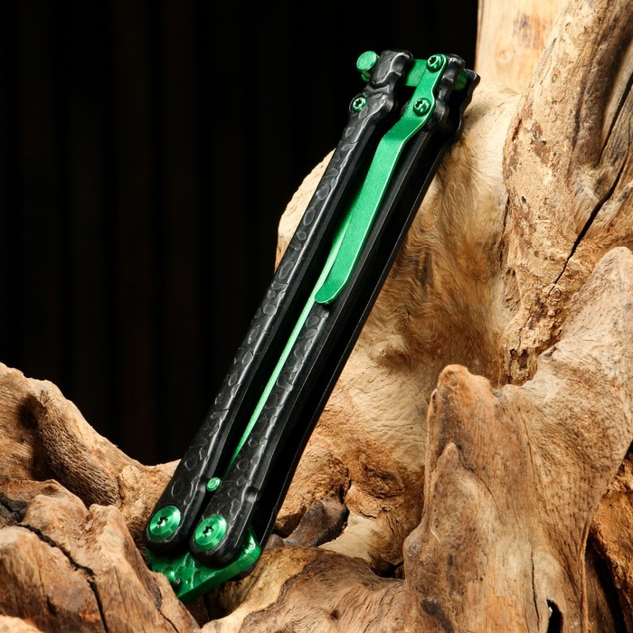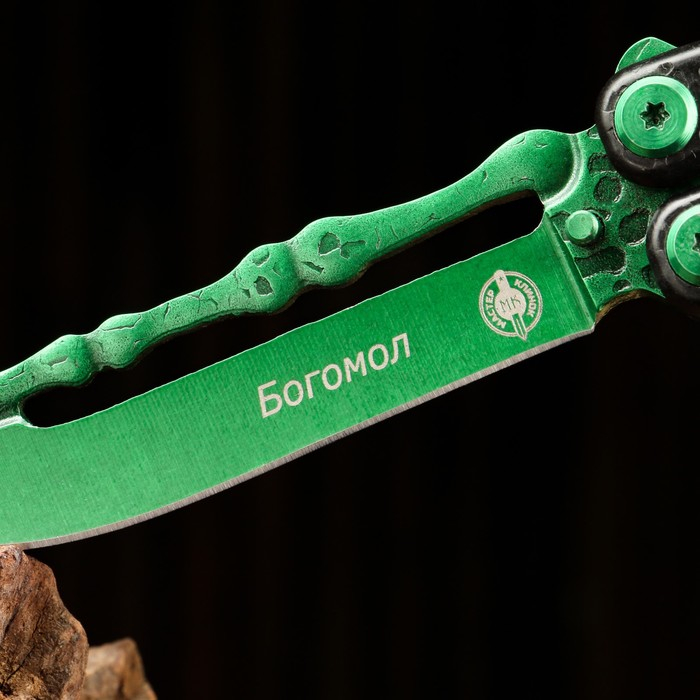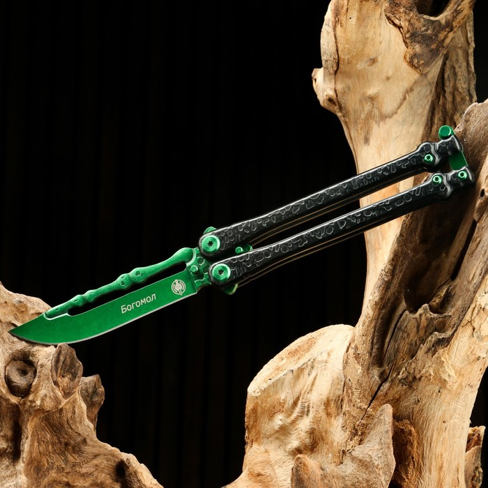 Нож-бабочка "Богомол" зеленый, сталь - 440, рукоять - сталь, 20 см