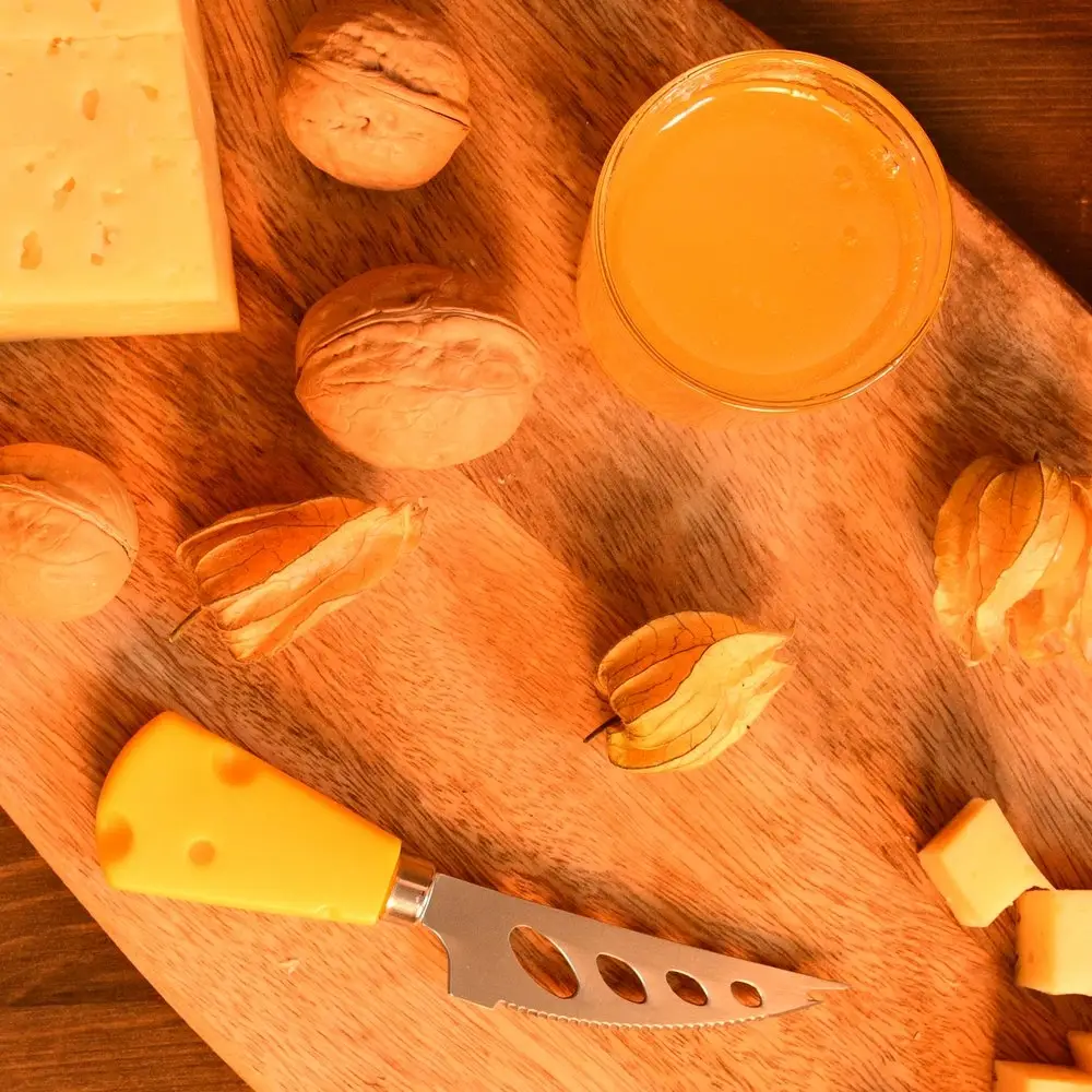 Сырная тарелка и аппетитные закуски из сыра, пожалуй, относятся к самым изысканным блюдам для фуршетов. Как здорово, что для приготовления и подачи существует специальный инструмент, с помощью которого закуски получатся как от шеф-повара! Нож используется для нарезки мягкого сыра. Эргономичная форма ручки и специальное лезвие делают этот процесс быстрым и удобным. Инструмент имеет отверстия в лезвии, которые сводят к минимуму прилипание сыра к поверхности ножа. Зазубрины на нижней части ножа позволяют с легкостью нарезать мягкие сыры, покрытые твердой оболочкой. Благодаря креативному дизайну ручки ножа он может стать отличным подарком ценителям сыров! Изготовлено: лезвие из коррозионностойкой (нержавеющей) стали, ручка из пластмассы (полипропилен). Размер: 14х3,5см.