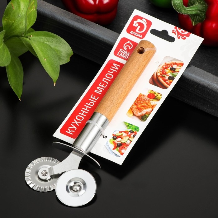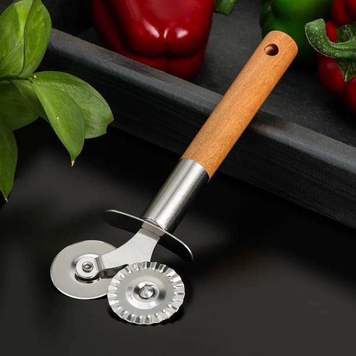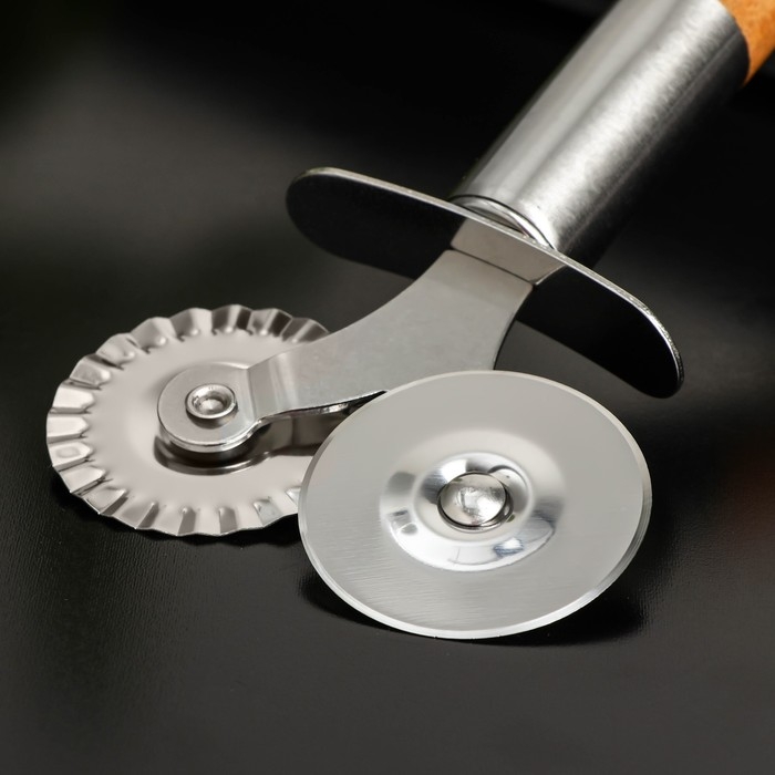 Нож для пиццы и теста Доляна «Валдай», двухсторонний, цвет бежевый