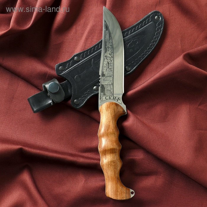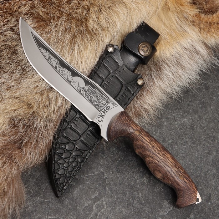Нож кавказский, туристический "Скиф" с ножнами, сталь - 40х13, вощеный орех, 14 см