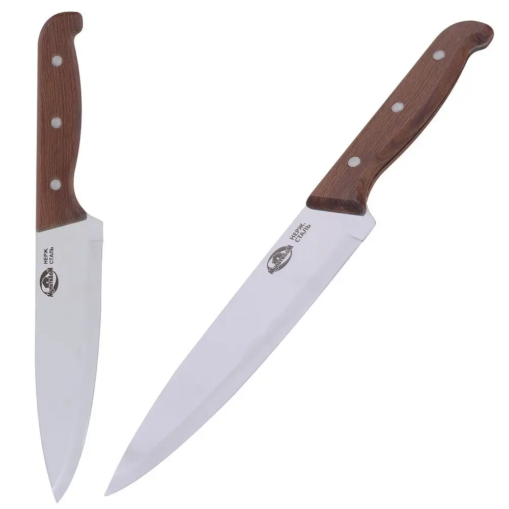 Нож для нарезки мяса, рыбы, фруктов и овощей станет универсальным помощником на кухне. Используйте нож для приготовления мясных и овощных блюд, салатов, супов и закусок. Острое и прочное лезвие рассчитано на длительную эксплуатацию, обеспечит комфорт во время использования. Изготовлен: лезвие из коррозионностойкой (нержавеющей) стали, ручка из дерева. Общая длина 28 см, длина лезвия 16,5 см.