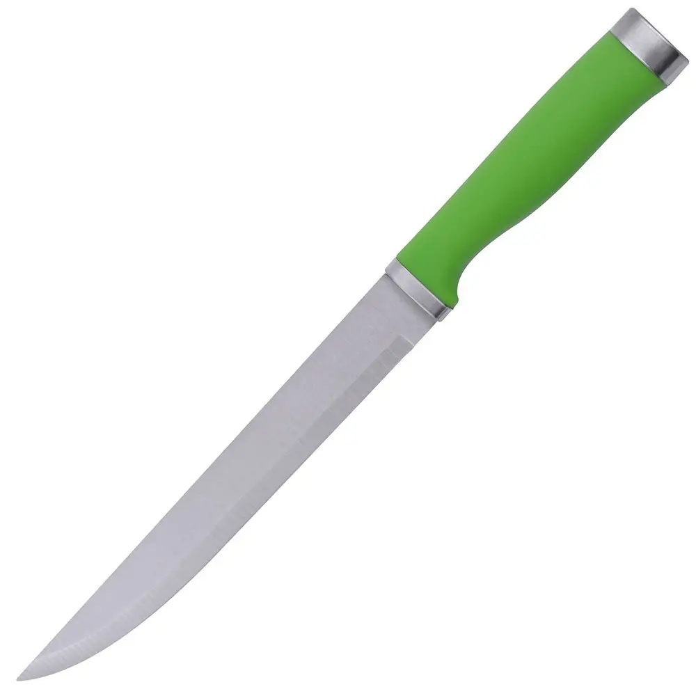 Разделочный нож используется для разделки рыбы, мяса, полуфабрикатов. Этот нож также может использоваться для нарезки других продуктов. Заостренное к концу лезвие позволяет делать аккуратные надрезы и прокалывать продукты и упаковку. Изготовлен: лезвие из коррозионностойкой (нержавеющей) стали, ручка из пластмассы. Можно мыть в посудомоечной машине. Общая длина 33 см, длина лезвия 20 см.