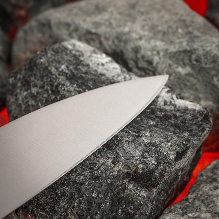 - клинок из однослойной японской стали твердостью 58-59 HRC;