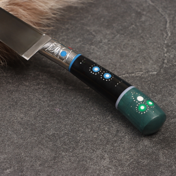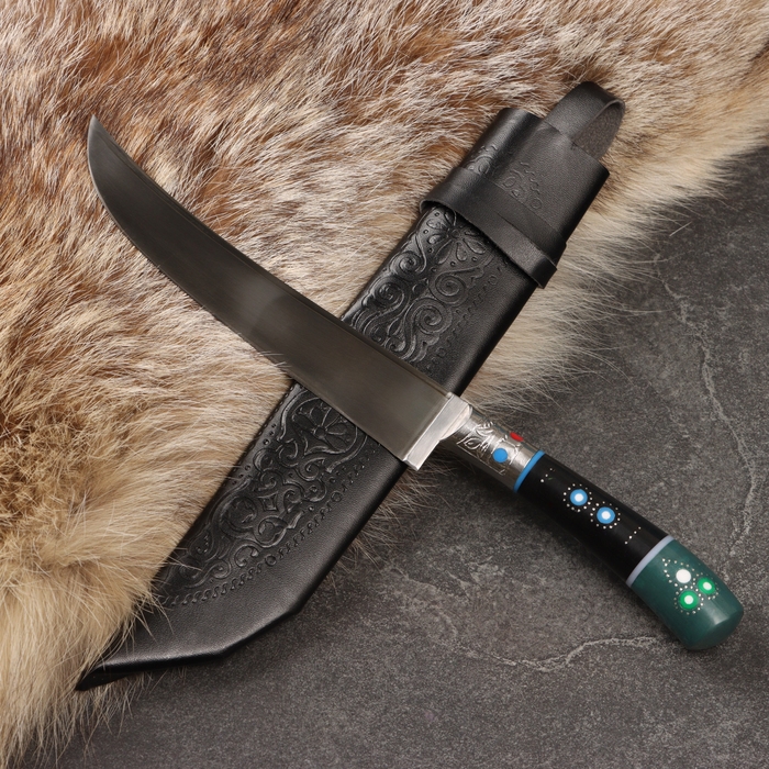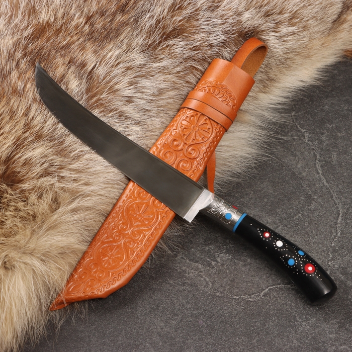 Нож Пчак Шархон - Большой, эбонит, ёрма, гарда мельхиор ШХ-15 (16-17см)