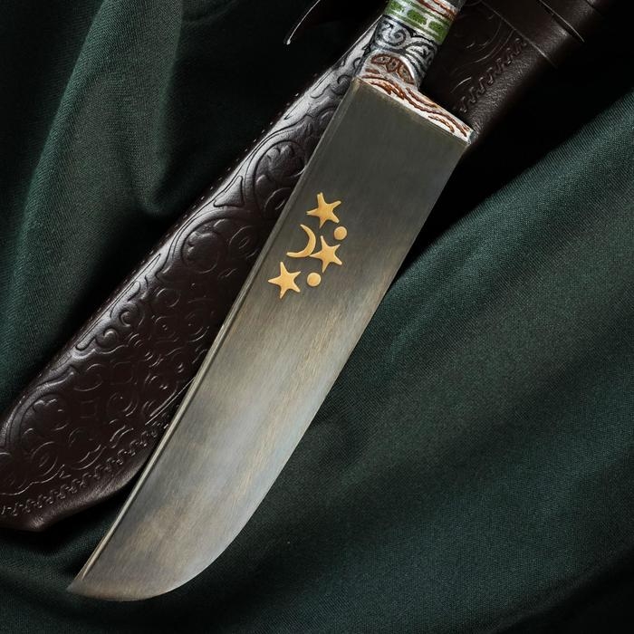 Нож Пчак Шархон "Рог сайгака" - пластик, сухма, гарда олово, гравировка, 15 см