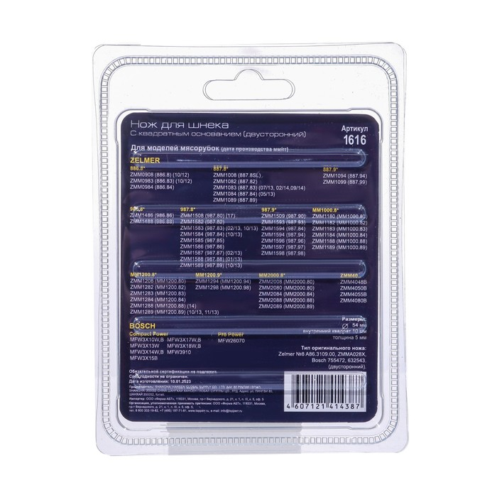 Нож с квадратным основанием Topperr для мясорубок Zelmer и Bosch, двусторонний