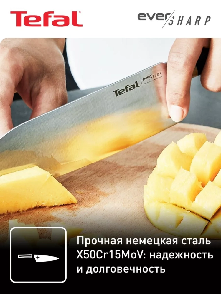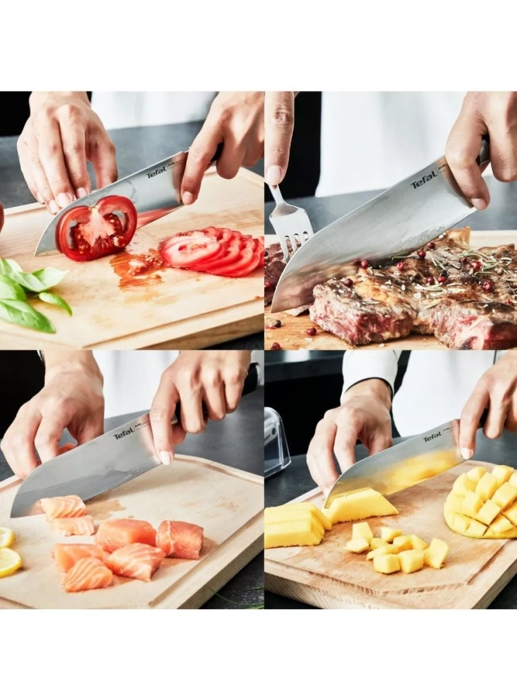 Наслаждайтесь процессом приготовления еды с универсальным металлическим ножом сантоку Ever Sharp от Tefal!